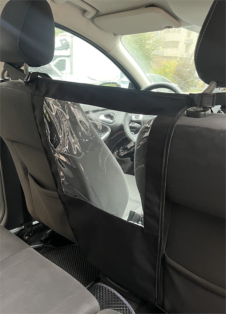 Защитная перегородка между передних сидений с прозрачным окошком черная.
